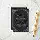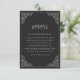 This elegant black and white wedding details card features ornate white corner flourishes and classic typography. The bold black background adds a dramatic, modern touch while ensuring your accommodation information stands out clearly. A refined insert card perfect for formal or black-tie weddings.