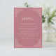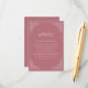 This dusty rose wedding details card features elegant white scrollwork in each corner and timeless serif and script typography. The soft pink background adds a romantic, vintage touch while clearly outlining accommodation details for your guests. A graceful addition to any blush or rose-toned wedding suite.