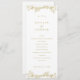 These white and gold wedding programs feature an elegant gold botanical design with clean, classic typography. The order of service is listed on the front, with space on the back for your wedding party, parents’ names, and a short thank-you message. A beautiful choice for formal gold wedding programs with timeless simplicity.