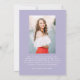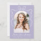 Celebrate your graduate’s achievement with this charming graduation announcement, featuring an arch-shaped photo framed by a hand-drawn white bow and ribbon on a soft purple background. The graduate’s name is displayed in a whimsical white script, along with their school name and graduation year, making this announcement truly personalised. The back includes a second photo with space for custom text, perfect for sharing graduation details, future plans, or a heartfelt message. With its modern design and vintage-inspired flair, this stylish announcement offers a timeless way to share your graduate’s success with family and friends!