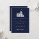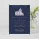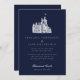 Elegant Vintage Castle Illustration Navy Wedding Invitation