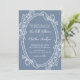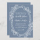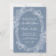 Dusty Blue Filigree Frame Wedding Invitation. This elegant and romantic design features a soft dusty blue background on both sides, creating a calm, refined look with timeless appeal.