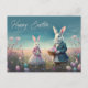 Elegant Easter bunny boy and girl dressed in vintage clothes with easter eggs