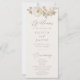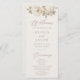 Elegant vintage floral wedding program featuring a top border of watercolor flowers and foliage in warm neutral tones of white, beige, ivory, gold, and brown. The neutral floral design is complimented by a modern calligraphy script. Personalise the front of the boho floral wedding program with your names, wedding date and location, and order of the ceremony. The program reverses to display a list of your wedding party. Designed to coordinate with our Elegant Vintage Floral wedding collection.