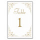 Elegant Vintage Foliage Gold White Wedding Table Number