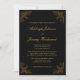 Elegant Vintage Gold Corners Script Black Wedding Invitation