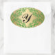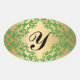 Added to this gold sticker is an original, unique decorative green vintage style pretty and elegant floral scroll graphic design border. Easily add any initial monogram in the shown black script or easily change the colour and font of the letter. Elegant, cool and classy plain gold metallic foil look background. Shown is the popular oval shape sticker. Other shapes and sizes are available. Nice for Christmas and holiday gift tags, labels, awards, as well as wine labels, weddings, anniversaries, birthdays, parties, etc. Expensive looking without the expense! Make great party favours and envelope seals!
