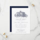 Impress your guests with this elegant formal wedding save the date by JessicaAmber. This classic card features a detailed illustration of an Italian villa, which you can replace with an image of the destination you will be married at (transparent or white background preferred). Elegant dark blue lettering displays the bride and groom names, and details of the wedding, including the location, date and that a formal invitation will follow.
