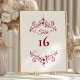 Elegant Vintage Romance Burgundy Table Number