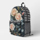 Step into timeless style with this Elegant Vintage Roses Personalised Backpack. Featuring soft blush and ivory roses against a deep midnight blue backdrop with striking black-and-white stripes, this backpack blends romantic charm with bold contrast. Your name or custom text is subtly showcased on the front pocket, making it uniquely yours.