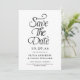 This elegant save the date card features a classic white background with hand-lettered script "Save the Date" and classic typography in black. On the back is your full frame (aka "full-bleed") photo, which can also be removed if desired. This design makes an elegant and chic first impression for your wedding! Background, text, and greeting are customizable.