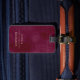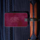 This minimalist luggage tag features elegant, vintage look gold text typography and a simple classic layout on a rich, burgundy textured look background for a professional look for the business traveller.