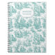 Vintage turquoise toile de jouy printed Notebook. This toile de jouy vintage romantic pattern is inspired by the exquisite designs of french countryside scenes. These sophisticated Toile prints are an all time rage at the moment, beautiful designs that bring natural beauty to any item. They combine both traditional charm and contemporary style.
