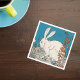 This is a vintage illustration of a white rabbit. He is sitting in a patch of grass and flowers. It is done in an elegant colour scheme of blue, grey and orange. See my store Art by MAR for matching products with this design.