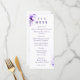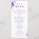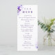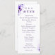 Design features the images of delicate violets in top left and lower right corners. Monogram of Bride and Groom are displayed at top followed by Menu heading and menu options. All text is customisable. Reverse features a cross and a larger image of a violet bouquet. Designed to coordinate with the "Elegant Violets Catholic Wedding Suite."