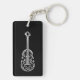 A double sided acrylic key chain with an elegant black and white violin design printed on it. personalise it with a name.