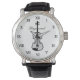 Elegant violin watch for violinist or musician. Personalised time piece with custom name. Roman numerals with stylish script typography and classical instrument logo. Classy black leather band. Stylish black and white design with custom name, monogram or quote. Unique Christmas or Birthday gift idea for violin player, music teacher, student, musician, orchestra member, husband, men, brother, son etc.