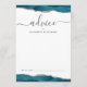 This elegant design features top and bottom borders of teal blue watercolor agate trimmed with silver faux glitter. The word "advice" appears in handwriting calligraphy script with flourishes at the beginning and end. Personalize with the names of the newlyweds in charcoal gray copperplate font. A line at the bottom provides space for guests to sign their advice and wishes for the couple.