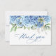 Elegant Watercolor Blue Hydrangea Flowers Simple Thank You Card