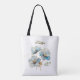 Elegant Watercolor Blue Poppies Monogram Name Tote Bag