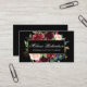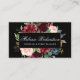 Elegant Watercolor Burgundy Marsala Floral and Gold Frame Black Business Card