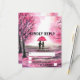 Watercolor cherry blossom love couple with red umbrella Wedding RSVP. Elegant wedding response card featuring pink sakura, japanese flowers, romantic couple.