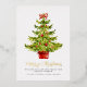 Send seasonal cheer with this elegant flat Christmas card, featuring real gold foil accents and a festive watercolor design. A vibrant Christmas tree takes centre stage—decorated with classic red ornaments, a stylish red bow, and nestled in a matching red container. The soft white faux-textured background adds a clean, wintry touch that complements the traditional palette.