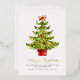 Elegant Watercolor Christmas Tree Gold Script Foil Holiday Card