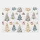 Elegant Christmas trees in vintage watercolor grace this set of holiday wrapping papers. Gold and silver are predominant among the many colours of the baubles on the blue green snowy pine trees and the fun gifts and packages that are also throughout the patterns. Bright gold stars are lovely toppers and silvery snowflakes fall on the light creamy backgrounds. Each of the 3 wrapping papers is a bit different, but they work well as a group, too.