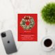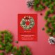 Elegant holiday party invitations featuring a festive watercolor Christmas wreath adorned with red bow and surrounded by holly berries. Personalise the magical Christmas wreath party invitations with your party details in white lettering. The invite reverses to a white background