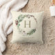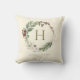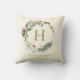 Elegant Watercolor Christmas Wreath Monogram Cushion