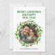 Elegant Watercolor Christmas Wreath Photo Holiday Card