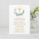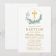 Elegant Watercolor Eucalyptus Leaves Wreath Baptism Invitation. Gold Cross.
