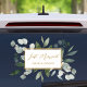 Adds nature elegance into your wedding car decor with Elegant Watercolor Eucalyptus Leaves Just Married Window Cling. Featuring watercolor illustration of greenery bouquet arrangement with customizable texts in the middles with touch of gold color.