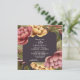 Fifty and fabulous birthday party invitations feature elegant watercolor flowers in pink and gold with beautiful greenery on a dark purple brown background. **TIP: SQUARE SIZE REQUIRES EXTRA POSTAGE. MATCHING items in our store.