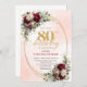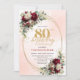 Celebrate an unforgettable milestone with this 80th birthday invitation, beautifully designed in a boho and bohemian style featuring soft watercolor blush and burgundy florals accented by an elegant gold frame. This refined design combines warmth, sophistication, and timeless charm—perfect for honoring a very special occasion.