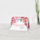 Watercolor roses, ranunculus, peonies, and leaves floral drop thank you card.