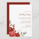 Celebrate the season in style with this sophisticated holiday party invitation featuring hand-painted watercolor florals in rich red tones and festive greenery. Accented with classic typography and a warm red backing, this customisable invite is perfect for elegant gatherings, formal dinners, or festive cocktail parties.