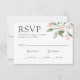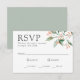 Simple and elegant, this watercolor floral wedding RSVP response card has a text template to include your meal selection entrees. A simple sprig of greenery and tiny peach coloured buds give a fresh nature-inspired look, along with a traditional style type face. Personalise the text with your required response date and mail selections. You can re-arrange the entree text to centre it after personalising with your text. Enter your text in the design template, then choose "customise further" to re-position the text as needed. A matching suite of wedding stationery is available in this design and makes a wonderful choice for spring or summer weddings.