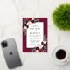 Modern Elegant Watercolor Burgundy Blue Floral Wedding Invitation includes burgundy roses, pink roses, blue flowers, red flowers, eucalyptus leaves and botanical greenery. Gold Foil Frame. Burgundy Background.