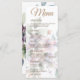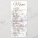 Introducing our minimalist and trendy wedding Menu card, featuring a pretty flowers in light purple and green leaves and more, with an elegant background , creating a clean and stylish look for your special day.