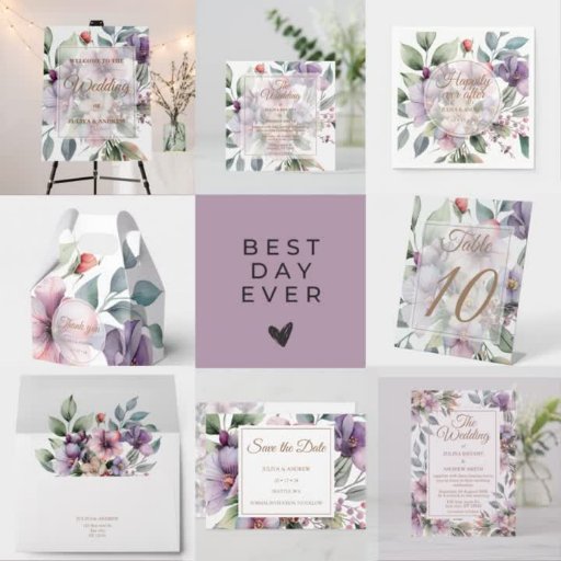 Introducing our minimalist and trendy wedding Paper Plates, featuring a pretty flowers in light purple and green leaves and more, with an elegant background , creating a clean and stylish look for your special day.