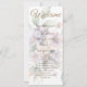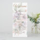 Introducing our minimalist and trendy wedding programme card, featuring a pretty flowers in light purple and green leaves and more, with an elegant background , creating a clean and stylish look for your special day.