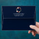 Elegant Watercolor Blue envelope with Watercolor Burgundy Marsala Floral Wreath including roses and botanical greenery. Return Address.
