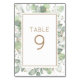 Modern sage green and gold watercolor foliage borders your table number in gold. The same design is also on the back. Easily personalise the typography, it will automatically change on the other side too.