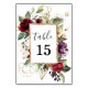 Elegant Watercolor Gold Deep Red Floral Table Number