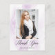 Thank friends and family for coming to your graduation by sending them a stylish photo thank you postcard. The graduation thank you postcards feature a purple watercolor background, Thank You in a trendy script font, and placeholders for your custom text and image.
