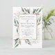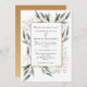Watercolor botanicall leaf and floral wedding invitation with gold frame and gold gradient. An elegant and simple design.