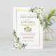 Elegant Watercolor Green White Floral Gold Wedding Invitation