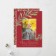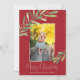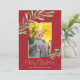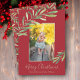 Holly and berries accent your favorite photo with your names and greeting in chic lettering in any color on the front. CHANGE the background color (we show red) and frame color too (we show gold.)**ADD more photos or details on the back. Select Matte for heaviest paper and high definition for best print quality. HORIZONTAL layout available in our store.